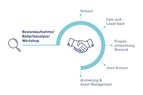 Für Corporates, die ihre Immobilien nicht verkaufen, aber professionell entwickeln lassen möchten, konzipieren wir Joint-Ventures, die auf die individuellen Anforderungen angepasst sind.